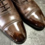 補修後に靴全体をお手入れすることで油分補給、補色、ツヤ出しなどをして仕上げます。